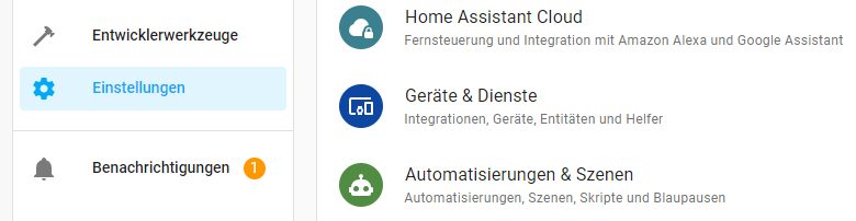 Nun wird über das Seitenmenü - Einstellungen - Geräte & Dienste - die Seite für die Integrationen aufgerufen:
