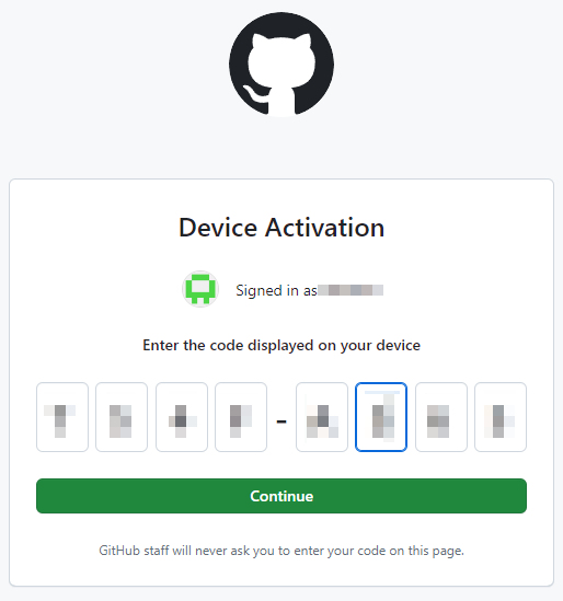 Nach der Bestätigung wird ein Fenster geöffnet, in dem der Link zum Github und ein Code angezeigt wird: