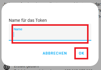 Einen Namen für den Token vergeben und mit "OK" bestätigen: