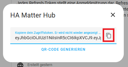 Im Folgenden Dialog den Token mit dem Button kopieren, irgendwo sichern und später im Skript "setup.sh" eintragen: