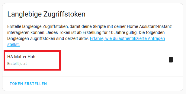 Langlebiger Zugriffstoken | Ein Zugriffstoken für einen Home Assistant |