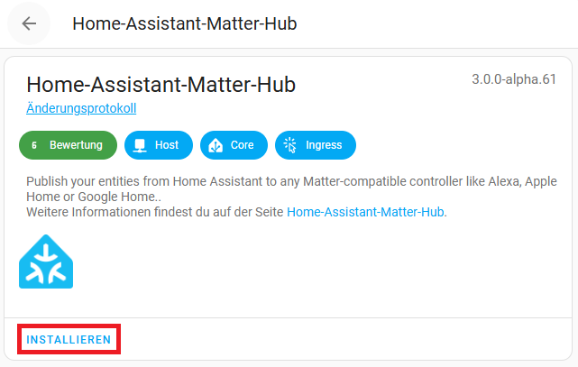 Und den "Home-Assistant-Matter-Hub" installieren:
