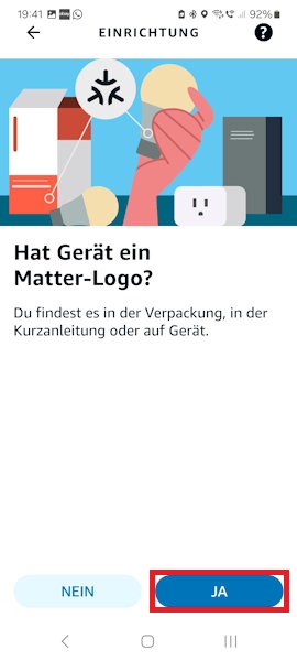 Nun die Kachel mit dem Matter Logo auswählen und den Anweisungen der App folgen: