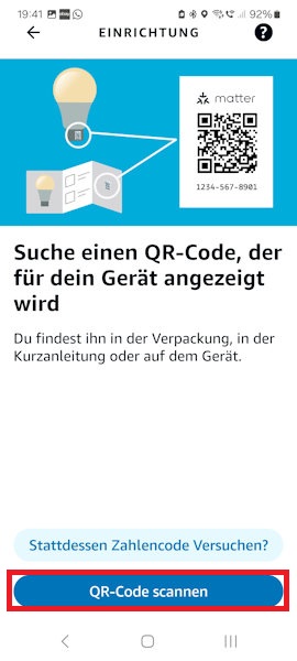 Es öffnet sich eine Seite mit dem QR-Code zum Koppeln mit Alexa: